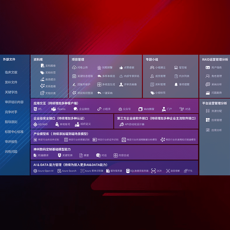 医疗器械产品上市前,,,要熟悉严格与繁复评审标准,,,,整理分析监管机构指导文件中的海量信息。。。。企业急需一个智能化解决方案,,,,提升知识管理效率,,,提高评审通过率,,以提升其市场竞争力。。。。
